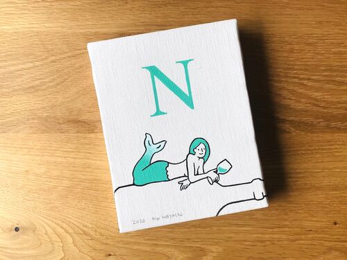 大学時代の友人で、デザイナーのハヤシ コウくんに絵を描いていただきました。 ミント色の人魚! イニシャルはN!